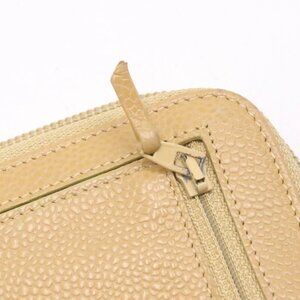 Chanel CC Logo Timeless Caviar Beige Leather Around Zip Around Wallet