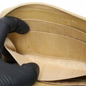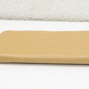 Chanel CC Logo Timeless Caviar Beige Leather Around Zip Around Wallet