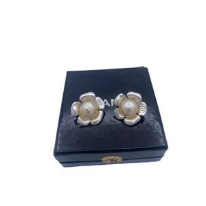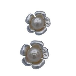 Chanel CC Logo White Pearl Clip On Earrings.