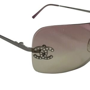 Authentic Chanel CC Rhinestone Logo Rimless Sunglasses