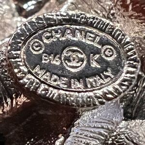 Textured silver-tone Chanel CC brooch featuring crystal accents and double stick pin closure. From the Fall 2016 Collection. Includes