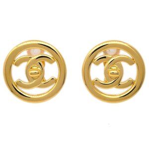 Chanel CC Turnlock Button Earrings Gold Clip-On 97P 161240