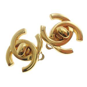 Chanel CC Turnlock Earrings Clip-On Gold Small 95A 99876