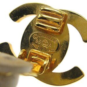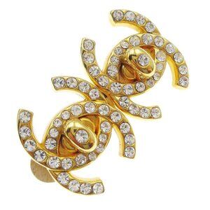 Chanel CC Turnlock Rhinestone Earrings Clip-On Gold Small 96A 98955