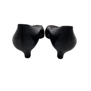 Chanel CC Vintage Kitten Heel Pump Black Leather Pointed Toe Size 37.5 US 6.5 7