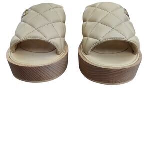 Chanel CC Wood Platform Sandal Slide Mule Size 39 US 8 8.5 Quilted Beige Leather
