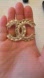 Chanel CC logo brooch featuring a gold-tone finish, faux pearls & Rhinestones
