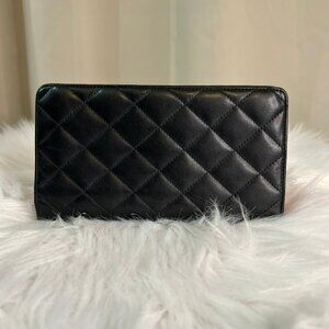Chanel Cambon Black Quilted Long Wallet With Pink Interior & Multiple Card Slots