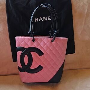 Chanel Cambon Line Small Pink and Black Quilted Tote