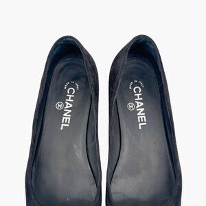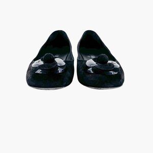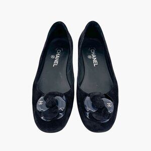 Chanel Camellia CC Ballet Flats Black Suede Size 38.5 US 7.5–8 Women Flower Logo