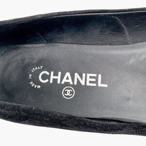 Chanel Camellia CC Ballet Flats Black Suede Size 38.5 US 7.5–8 Women Flower Logo