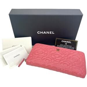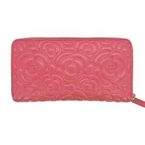 Chanel Camellia Caviar Leather Zip Around Wallet