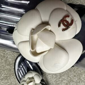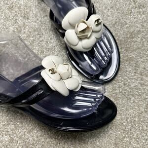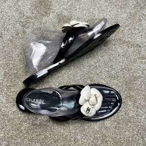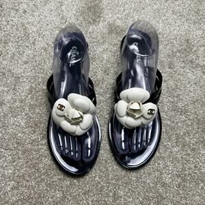 Chanel Camellia Flip Flops – Black & White Floral Thong Sandals 41