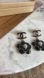 Elegant Chanel stamped earrings featuring a black flower design with gold accents. Perfect for adding a touch of luxury to any outfit.