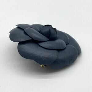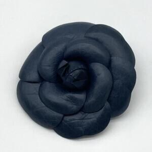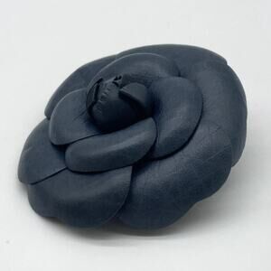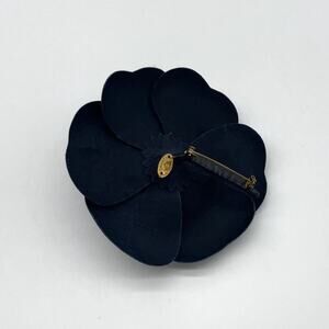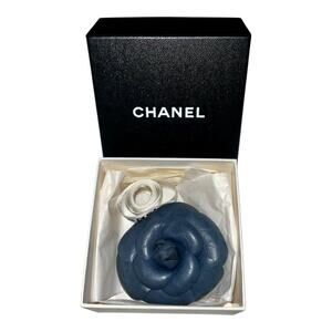 Chanel Camellia Navy Leather Pin Brooch W/Box and Ribbon