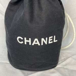 Chanel Canvas Small Bucket Bag Drawstring Shoulder Sling Beach