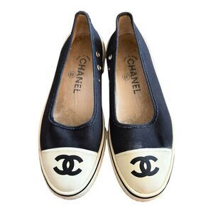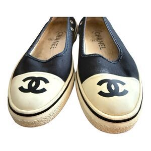 Chanel Canvas Sneakers VTG Size EUR 36 US 5-5.5 Black White Flat Slip Ons