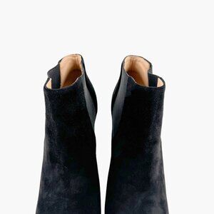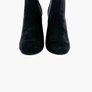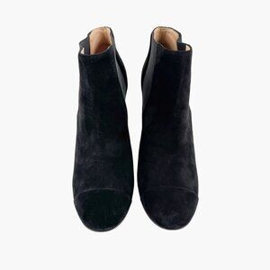 Chanel Cap Toe Ankle Boots EU 39 US 8-8.5 Black Suede Block Heel Chelsea Booties