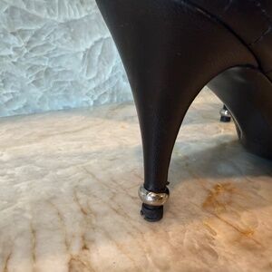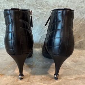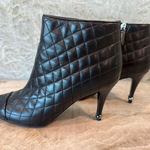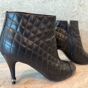 CHANEL QUITED BLACK CAP TOE LOGO ANKLE BOOTIES