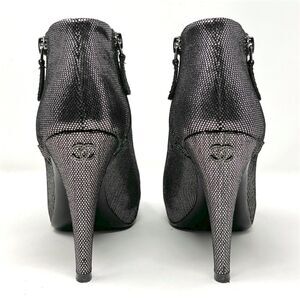 Tags: Chanel ankle boots, metallic leather boots, hidden platform boots, designer heels, luxury footwear, Chanel Karl Lagerfeld, rare Chanel shoes, high heel boots, fashion collector, statement boots, ankle booties, silver metallic boots.