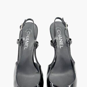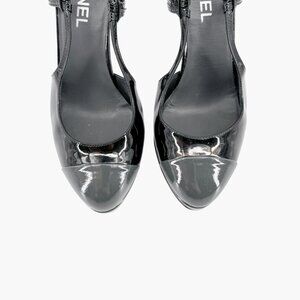 Chanel Cap Toe Slingback Pump Size 38.5 US 7.5-8 Black Patent Platform High Heel