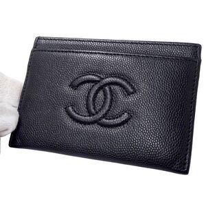 Chanel Card Case Wo Men's Caviar Skin Black Business Card Holder Commuter