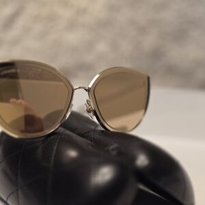 Chanel Cat Eye Metal Sunglasses - gold reflective and tortoise.