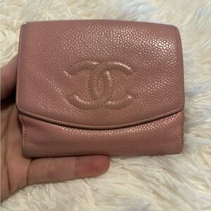 Chanel Caviar Mini Wallet in pink.
