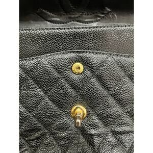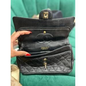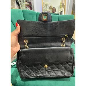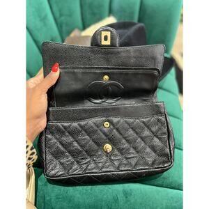 Chanel Caviar Quilted Medium Classic Double Flap Bag Black Gold Authentic