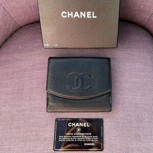 Chanel Caviar Skin Coco Mark Bi-Fold Wallet Leather