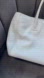 This is an authentic CHANEL Calfskin Cerf Executive Shopper Tote in White. This is a classic shopper tote that is simple yet sophisticated. The bag is crafted of luxurious calfskin leather in white and features a wide front pocket sealed with a silver Chanel CC twist lock. The bag has rolled leather top handles, an optional shoulder strap and a full-length pocket on the rear. The top is open to a white fabric interior with zipper pockets.