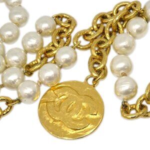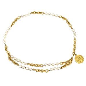 Chanel Chain Belt Artificial Pearl Gold 95A 124700