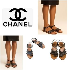 Chanel Chain CC Gladiator Sandals Black Size 39.5 $1025