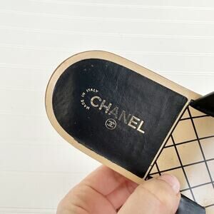 Chanel sandals, CC logo flats, chain thong sandals, designer slides, Chanel shoes, leather sandals, toe ring flats, black tan sandals, luxury footwear, resort chic, summer shoes, French fashion, Parisian style, capsule wardrobe, timeless classic, quilted sole, gold chain detail, elegant flat sandal, quiet luxury