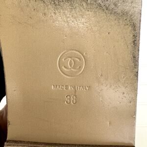 Chanel Chain CC Logo Toe Ring Thong Sandals Black Tan Leather Flats 38