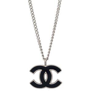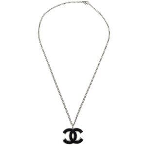 Chanel Chain Necklace Silver Black 06P 153102