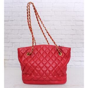 Chanel Chain Tote Red Lambskin Leather Shoulder Bag Handbag Purse A4604