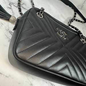 Chanel Chevron Camera Case Bag CC Black Diagonal Shoulder Purse Handbag Silver