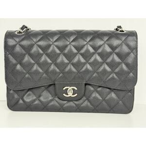 Chanel Classic Caviar Jumbo Double Flap Bag Black with Silver Hardware B-2