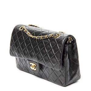 Chanel Shoulder Bag Classic Double Flap 26 in Black Quilted Lambskin Leather and Gold hardware. The product is in Excellent Condition (A).