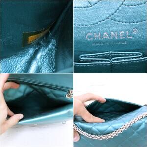 Chanel 2.55 Reissue Classic Double Flap Metallic Teal Green Leather Crossbody Bag
