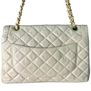 This is a Chanel Paris Limited Edition Double Flap shoulder bag in white lambskin leather.