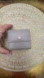 Chanel wallet in classic gray leather. Features iconic logo detail. Compact and stylish.