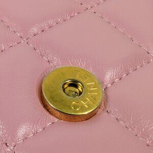 This rare and versatile Chanel Wallet on Chain is crafted from soft, luxurious pink quilted lambskin leather. It features a compact, rectangular silhouette with a front flap secured by the iconic gold-tone CC snap. The bag includes a long, interwoven gold and tonal chain and pink leather strap, enabling shoulder or crossbody. The strap can be tucked inside the bag to be carried as a clutch. The interior is designed for functionality, with multiple card slots, a zippered compartment, and slip pockets, making it a perfect all-in-one accessory for essentials. The exterior also features a back slip pocket. This timeless piece embodies Chanel's blend of practicality and iconic style in a beautiful, soft color. This bag is in excellent condition.