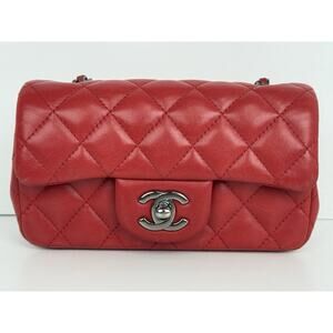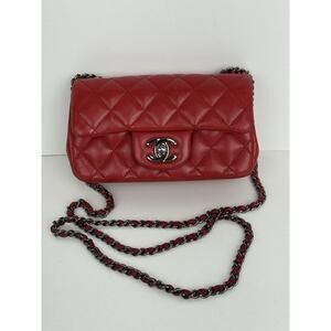 Chanel Classic Timeless Leather Crossbody Bag Red with Silver Hardware