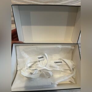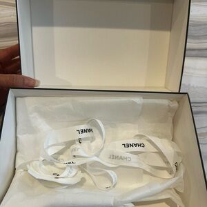 GUC-Chanel box in white-comes with tissue paper, ribbon, and flower. Ideal for gifts or storage of accessories. Please see all pics as there is a some minor marks on the box.