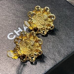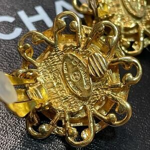 Chanel Clip on Earrings with Red Glass Cabochon. 1 1/4 with COA