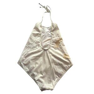 Chanel Coco Beach Collection Large CC Logo One Piece Swimsuit in White 2018