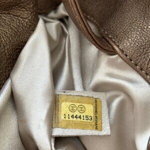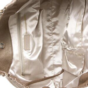 Neutral Leather; Satin Lining & Three Interior Pockets; Snap Closure at Top;