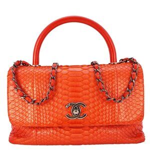 Chanel Coco Flap Python Leather Top Handle Shoulder Bag Red